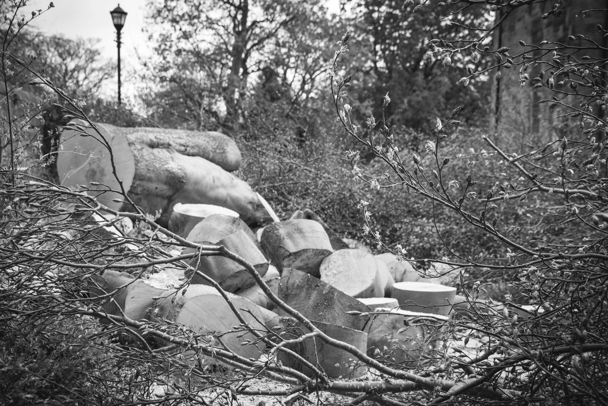 The tree was diseased. There wasn’t really a choice. If it fell — and it could given its size and the frequent wind storms in Scotland — it could have taken out a number of houses with it. And then, one morning it was marked for removal. So, over the course of a couple of long days, it was brought down, piece by piece.